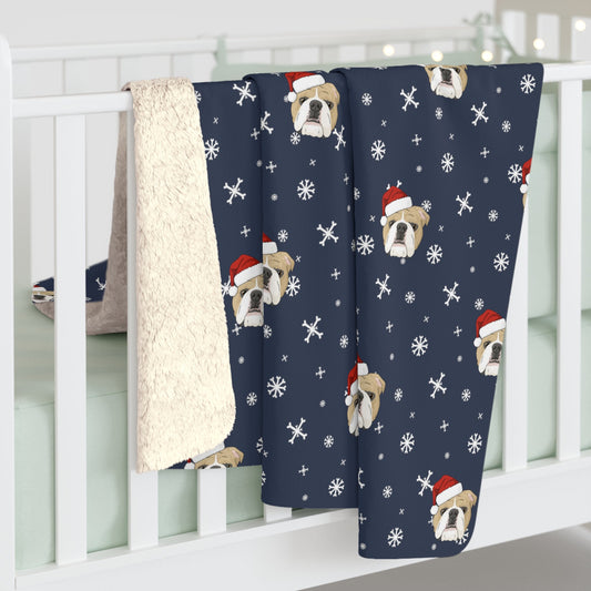 Winter English Bulldog Blanket | Sherpa Fleece