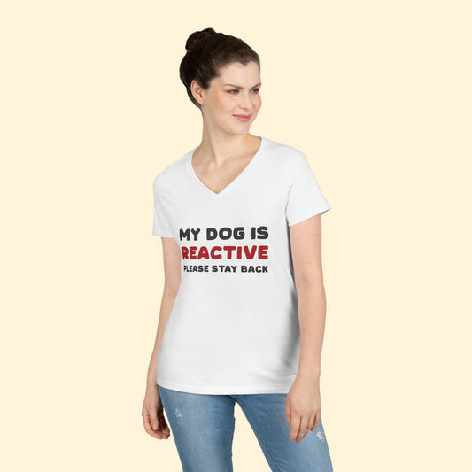 My Dog Is Reactive | 2-Sided Print | Ladies' V-Neck T-Shirt